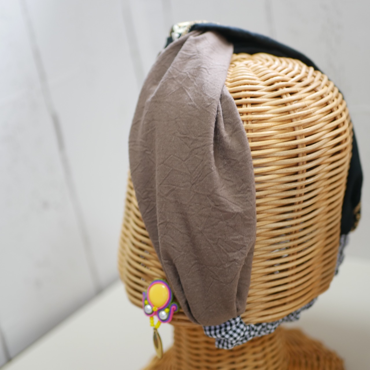 不器用さんでも必ず可愛く着けられる一品です。クロスターバンは可愛いけど、綺麗に着けられないというお声をよく聞きます。それを解消すべく、独自の縫製でクロス部分を加工することで、サッとかぶるだけで簡単に綺麗なシルエットが作れます。不器用さんでも自信を持っておしゃれを楽しんでいただける一品です。