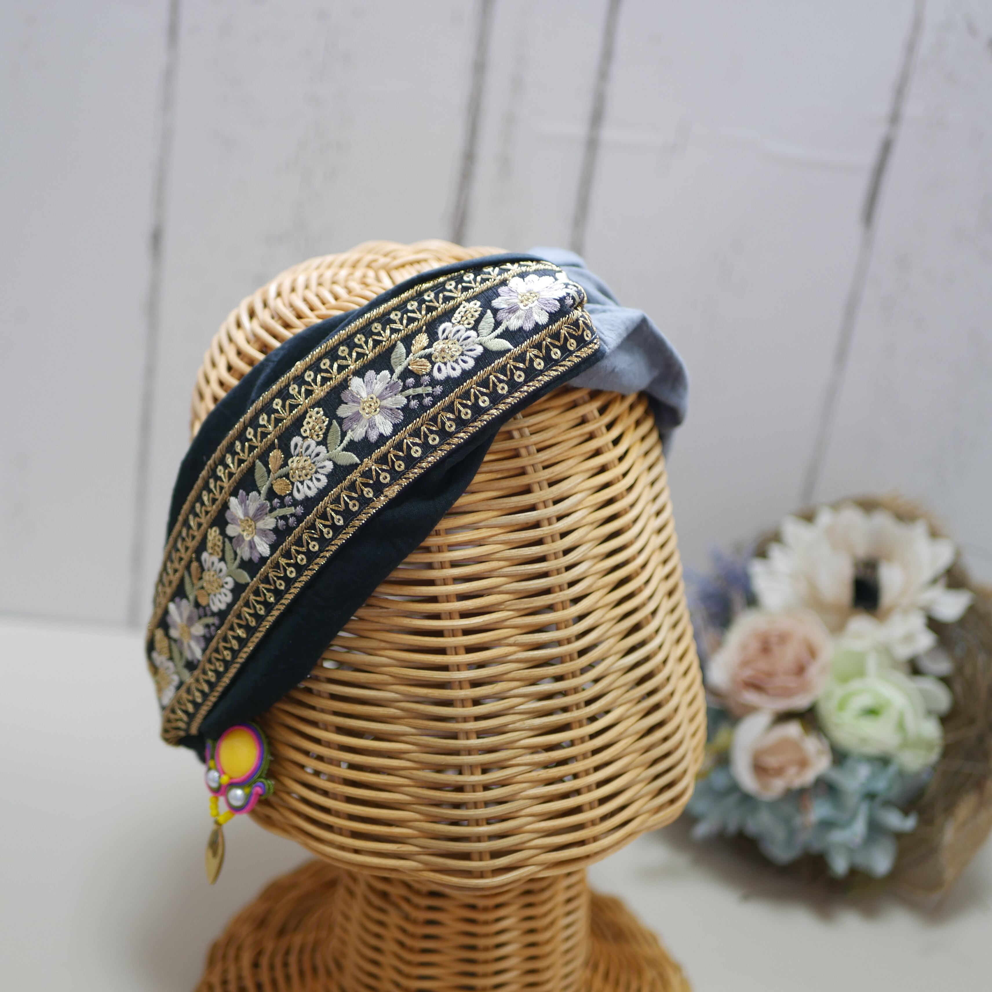 不器用さんでも必ず可愛く着けられる!サッとかぶるだけインド刺繍リボンのクロスターバン