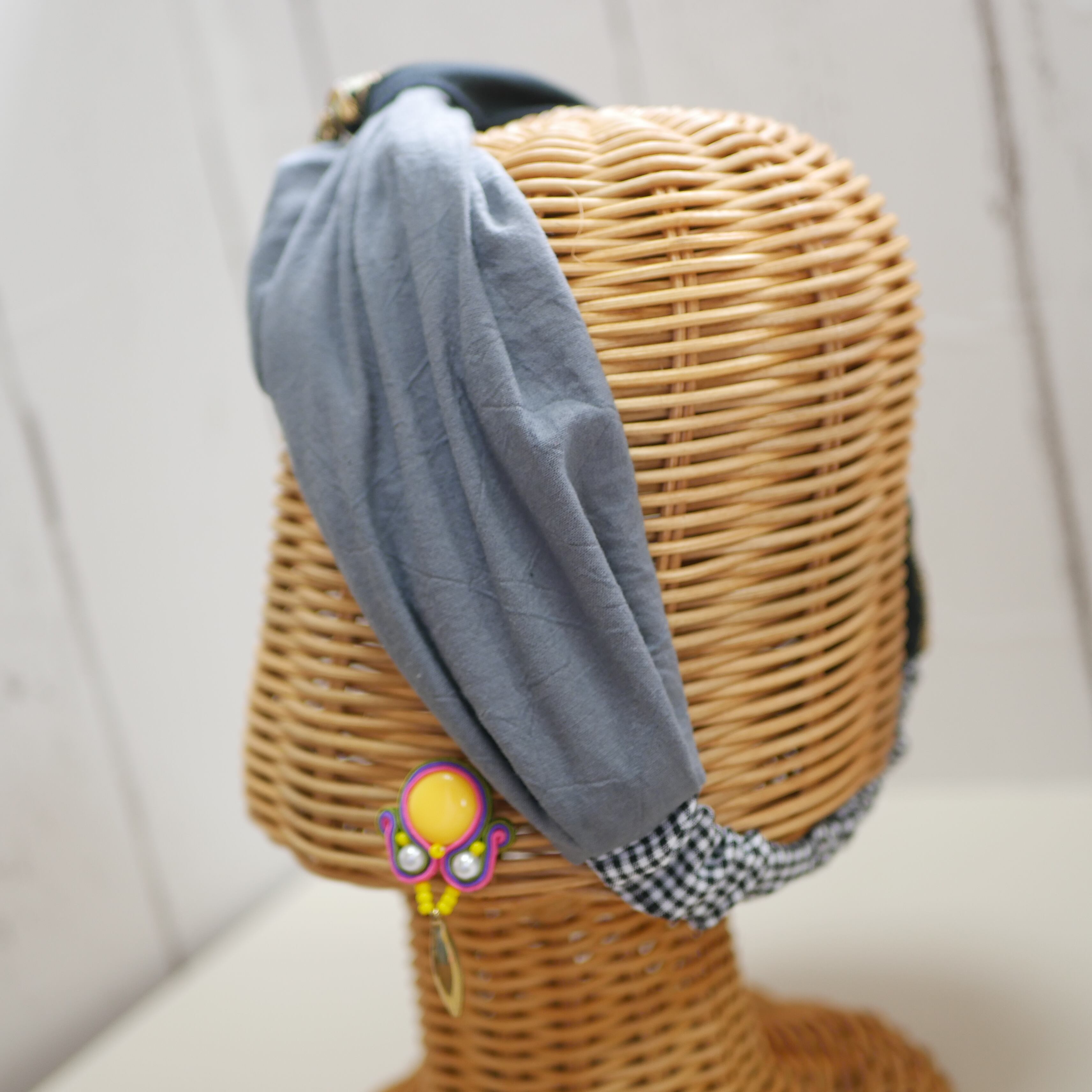 不器用さんでも必ず可愛く着けられる一品です。クロスターバンは可愛いけど、綺麗に着けられないというお声をよく聞きます。それを解消すべく、独自の縫製でクロス部分を加工することで、サッとかぶるだけで簡単に綺麗なシルエットが作れます。不器用さんでも自信を持っておしゃれを楽しんでいただける一品です。