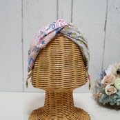 ターバンの生地はコットン100%のインドのブロックプリント生地を使用しています。ブロックプリント生地とダブルガーゼ重ねて縫っているので柔らかく、頭や髪に優しくフィットし、快適な使用感を実現しました。心地よいタッチと柔らかな素材感で、長時間の着用も快適です。