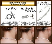 留め具はクラスプ、カニカン&アジャスター、マンテルがございます。