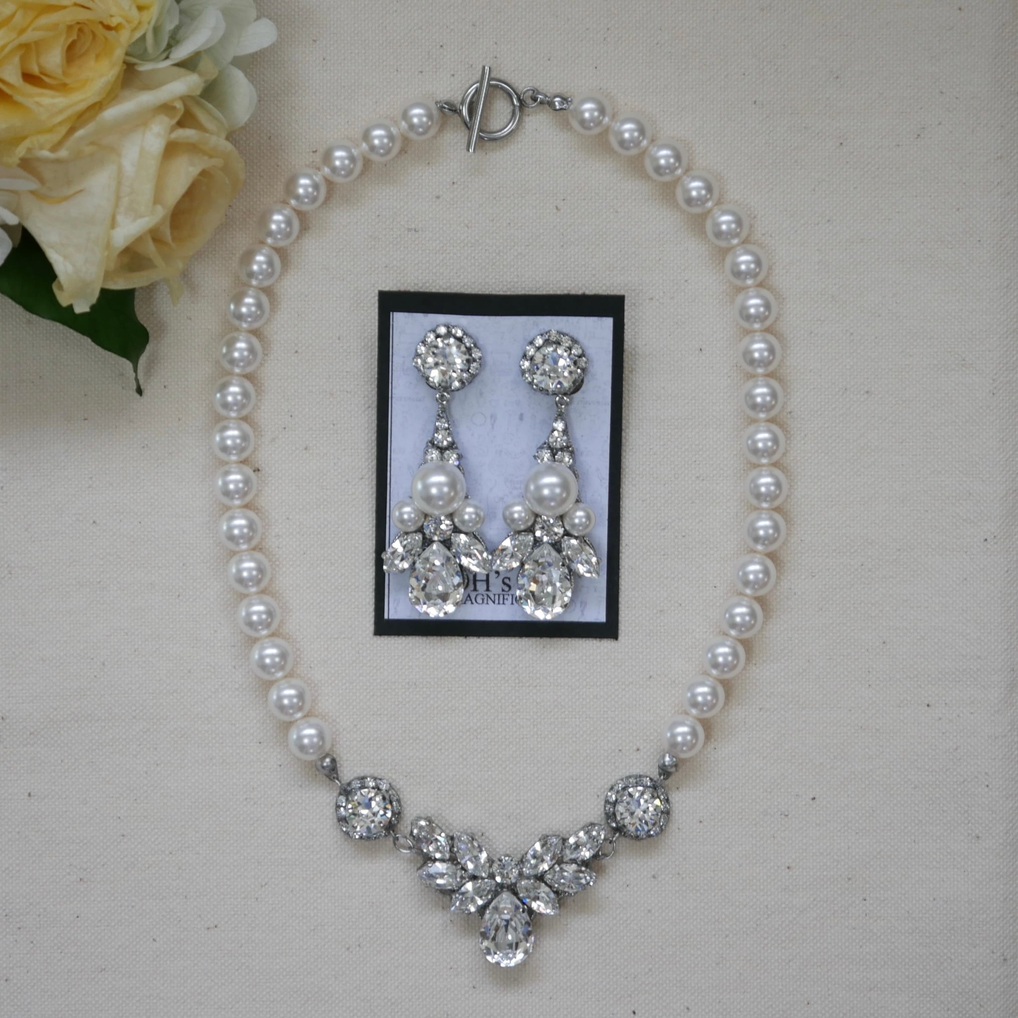 強い輝きを放つスワロフスキーとクリスタルパールをふんだんに使った贅沢な逸品。