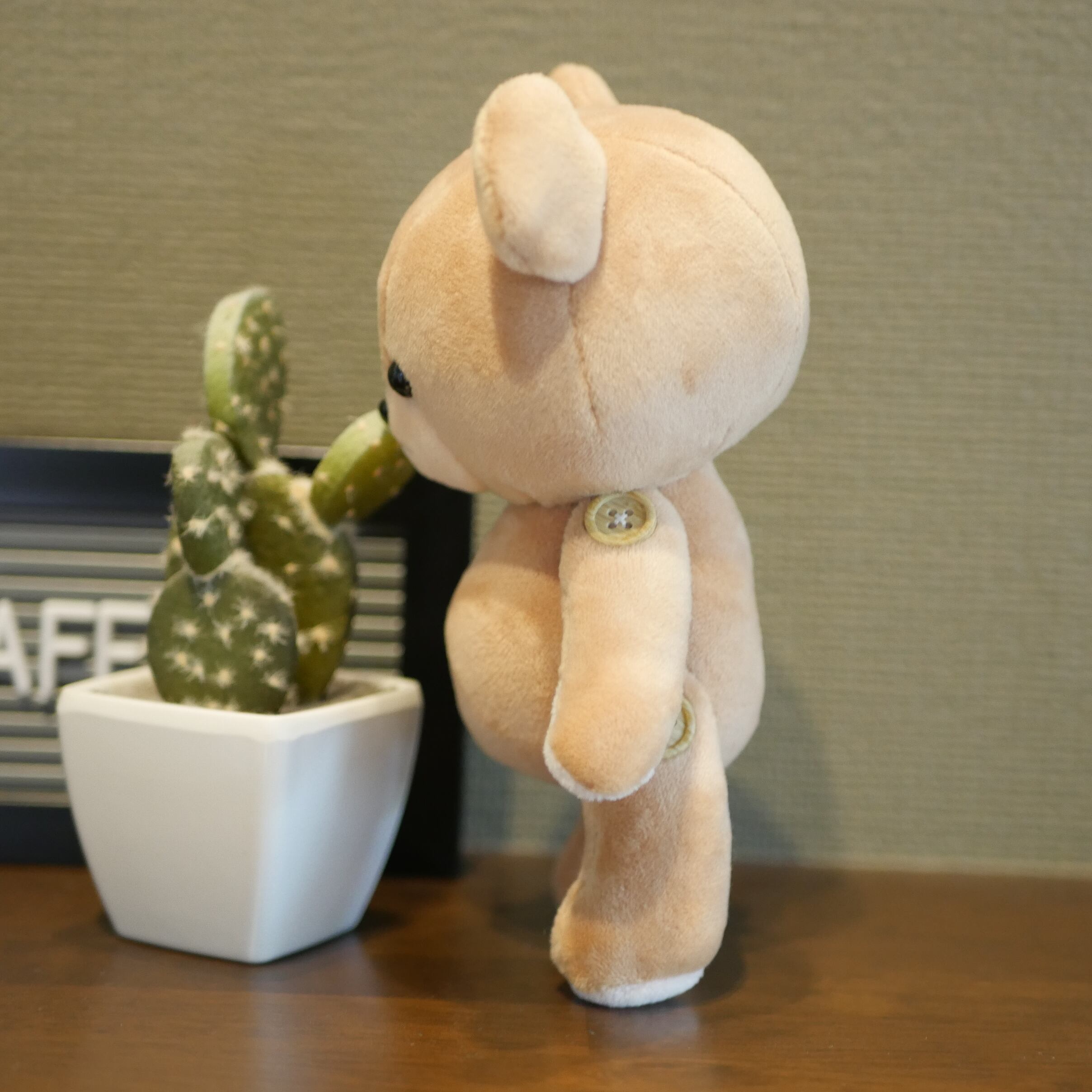 お子様のお世話人形や、インテリアとしてもおすすめのアイテムです。 可愛らしいテディベアのような見た目でボタンのジョイントで手足を動かせます。色々なポーズをさせてあげて下さい♥ʾʾボタンはウッド調のプラスチック製ですので、レトロな雰囲気が漂うデザインで、どこか懐かしさを感じられます。
