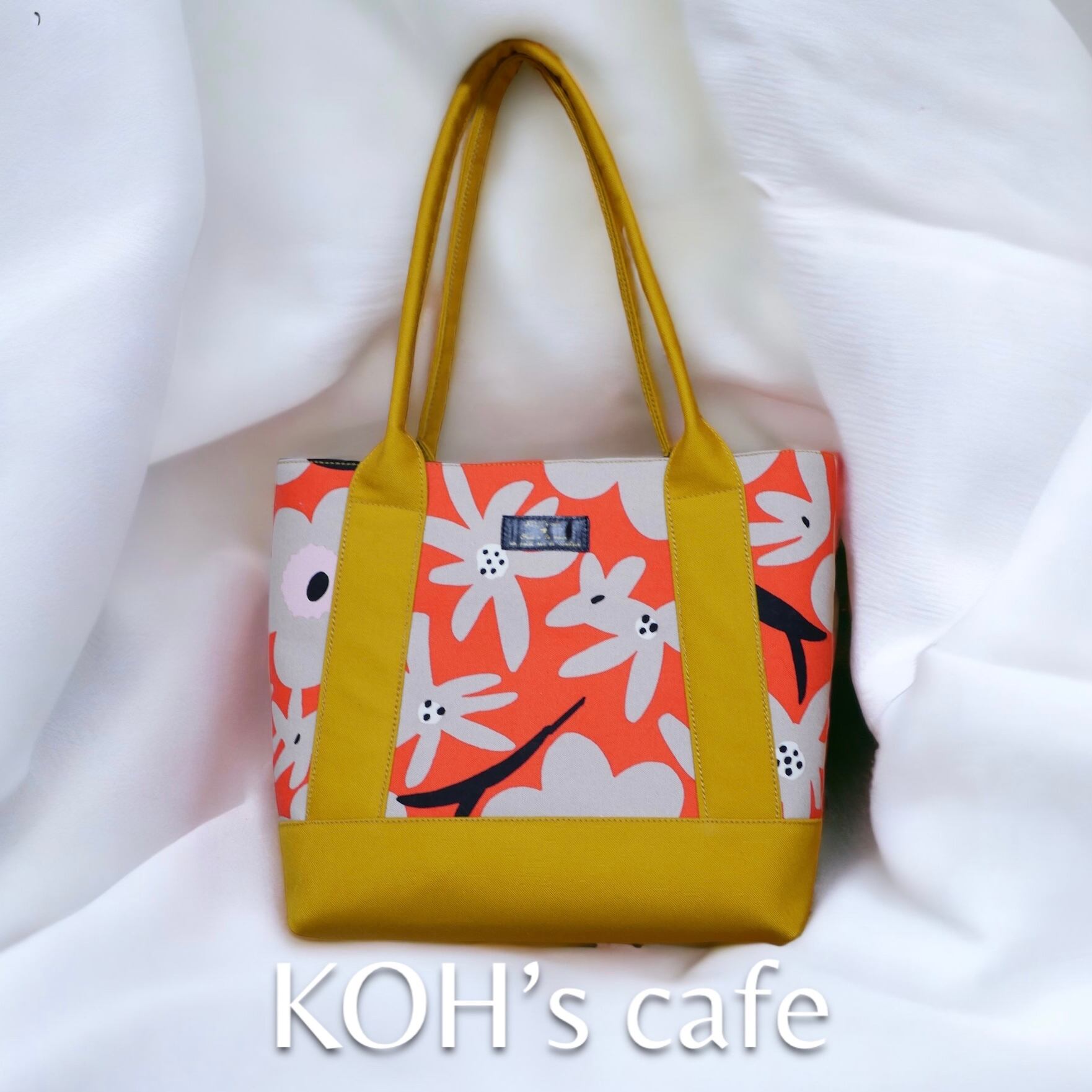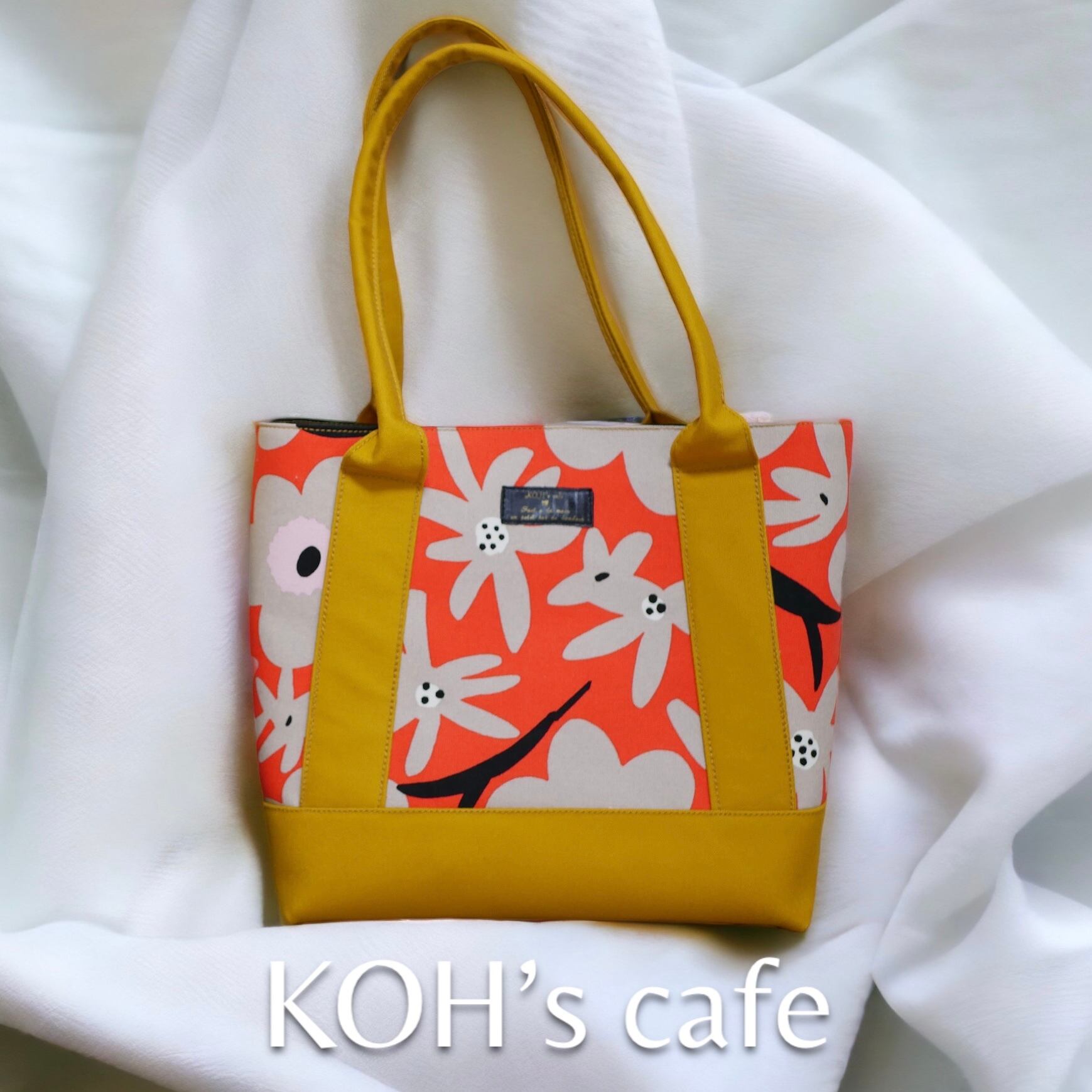 レッドとマスタードの北欧柄がおしゃれなトートバッグMサイズです。
