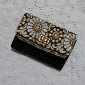 大人な雰囲気のクールなブラックベースにゴールドの刺繍が施された、インド刺繍リボンがアクセントになっている、手のひらサイズの小さくて便利なミニ財布。