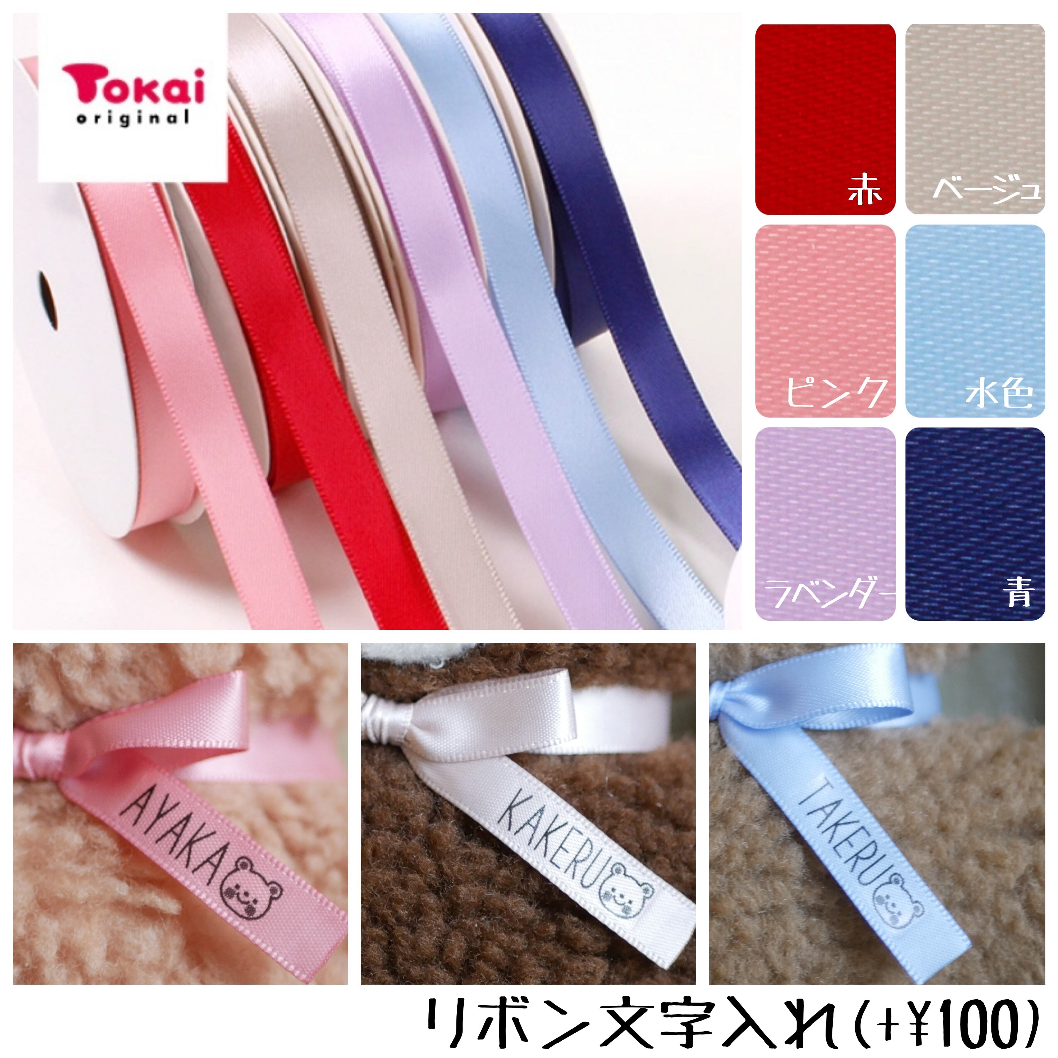 リボンのカラーは赤、ピンク、ラベンダー、ベージュ、水色、青よりお選びいただけます。