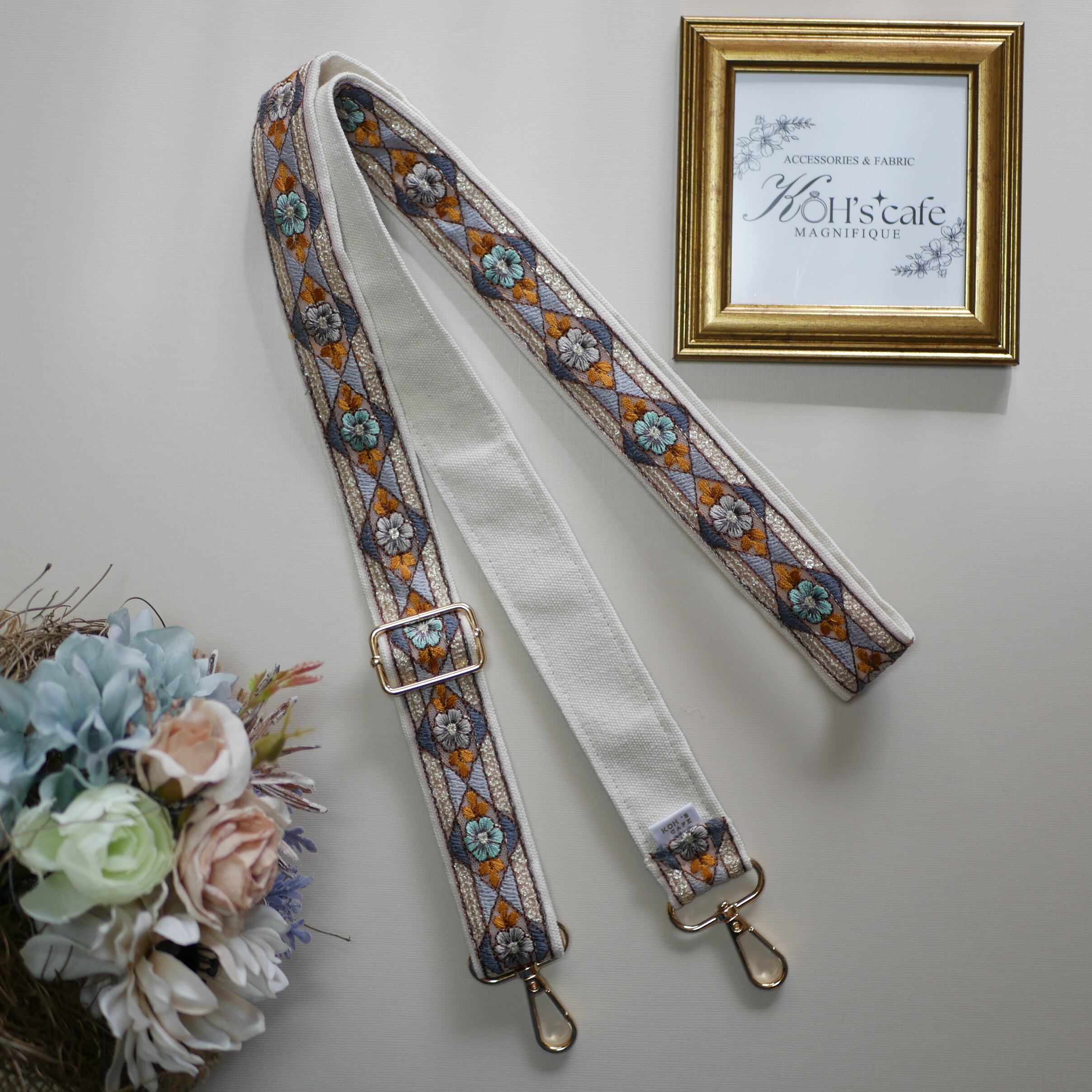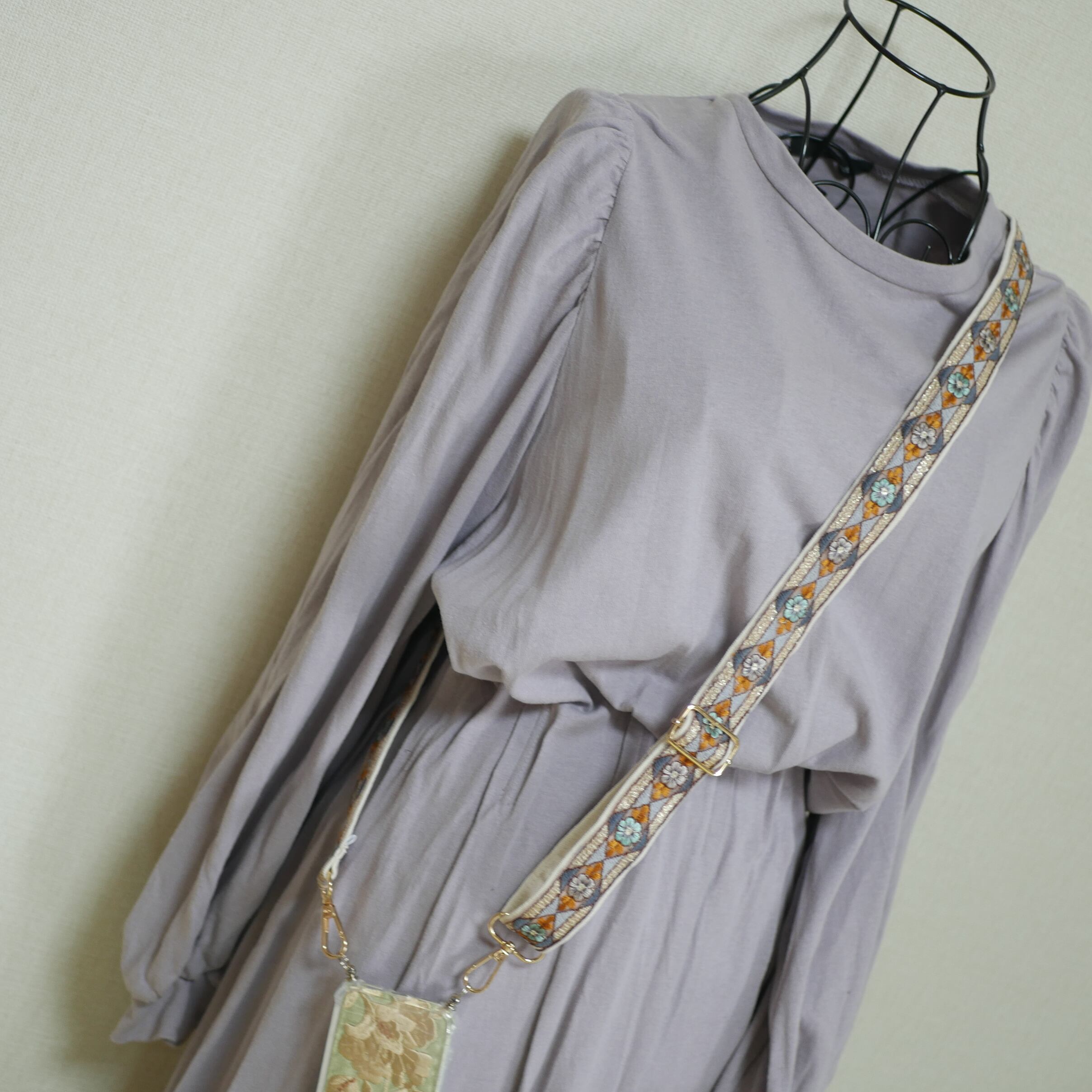 素材:インド刺繍リボン、帆布、真鍮製金具
