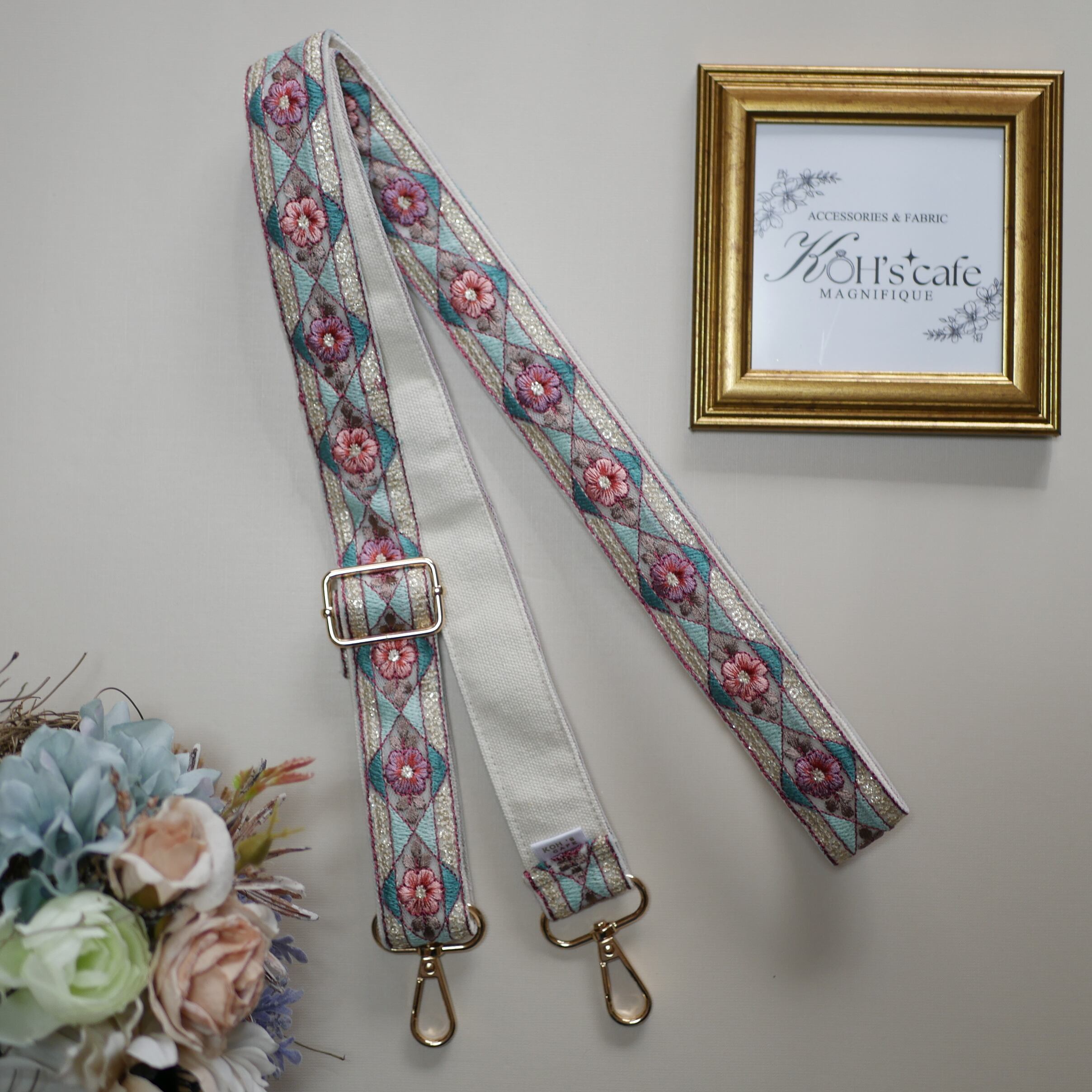 素材:インド刺繍リボン、帆布、真鍮製金具