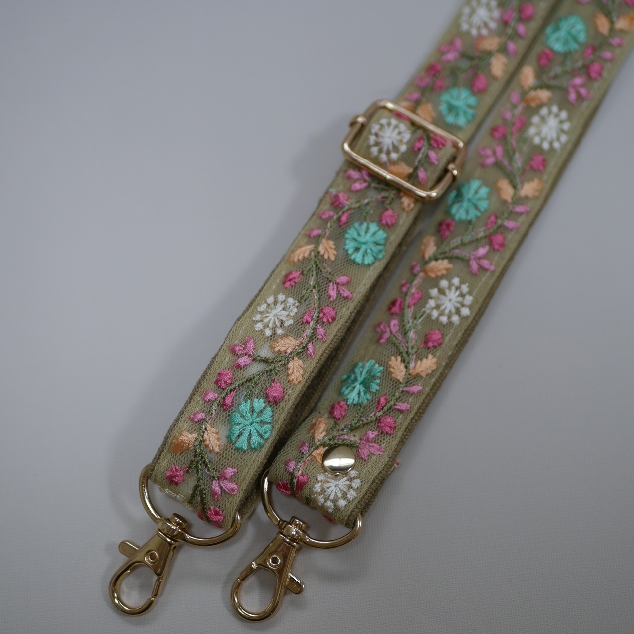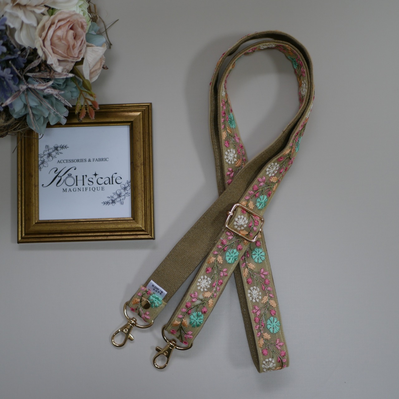 素材:インド刺繍リボン、帆布、真鍮製金具