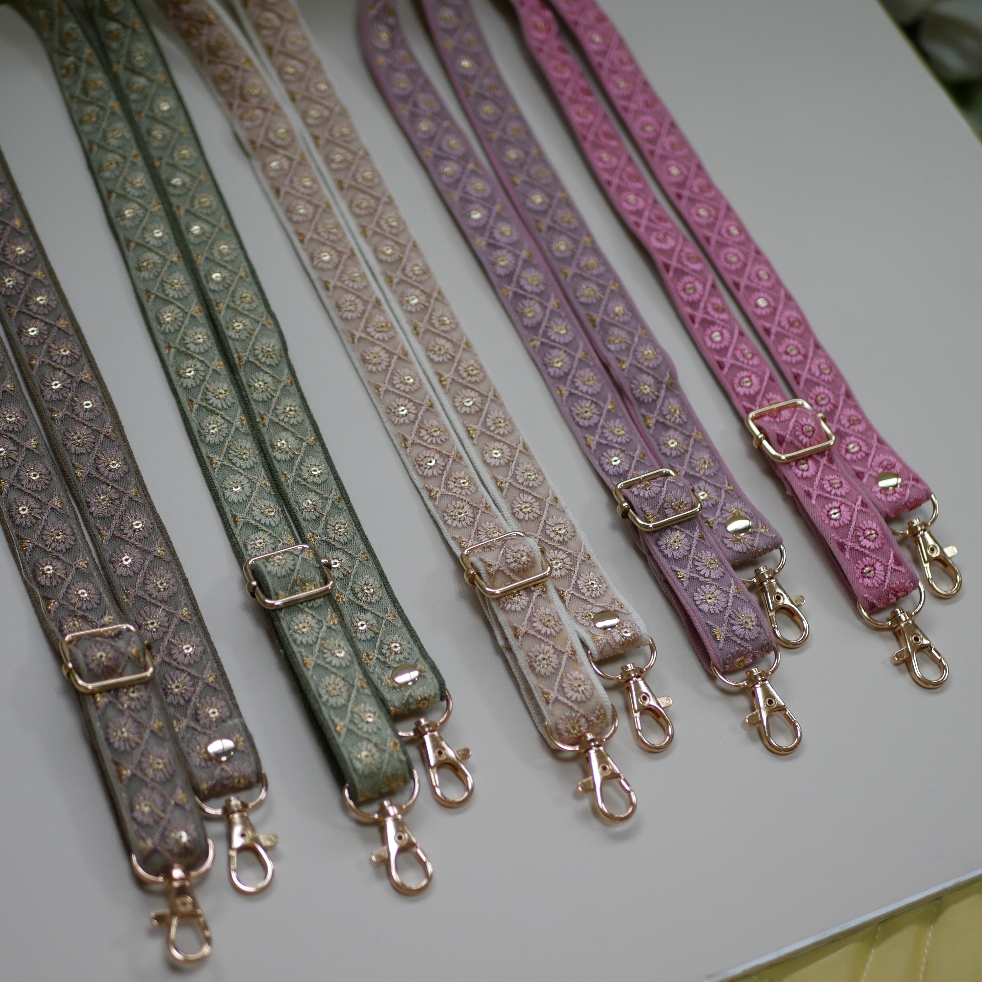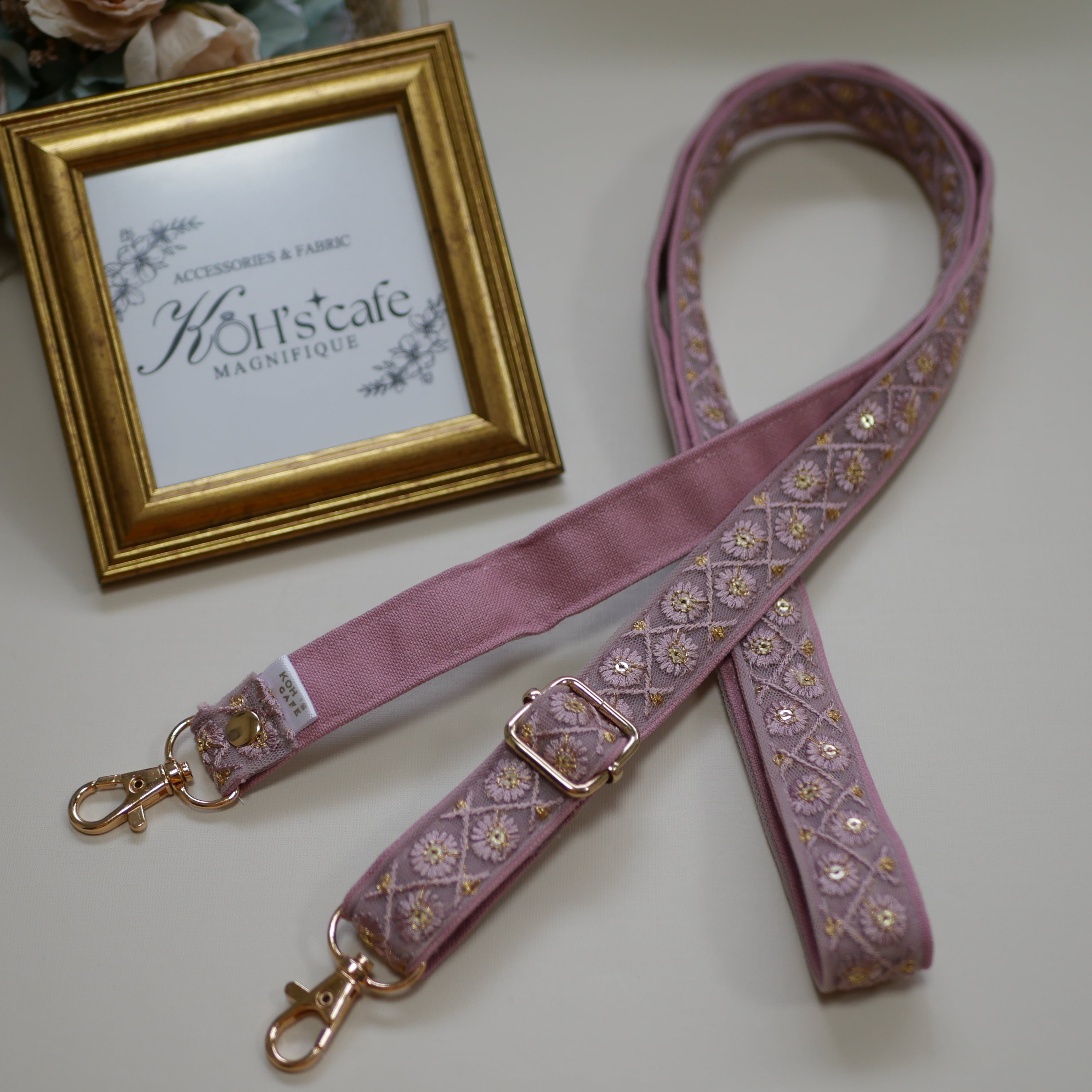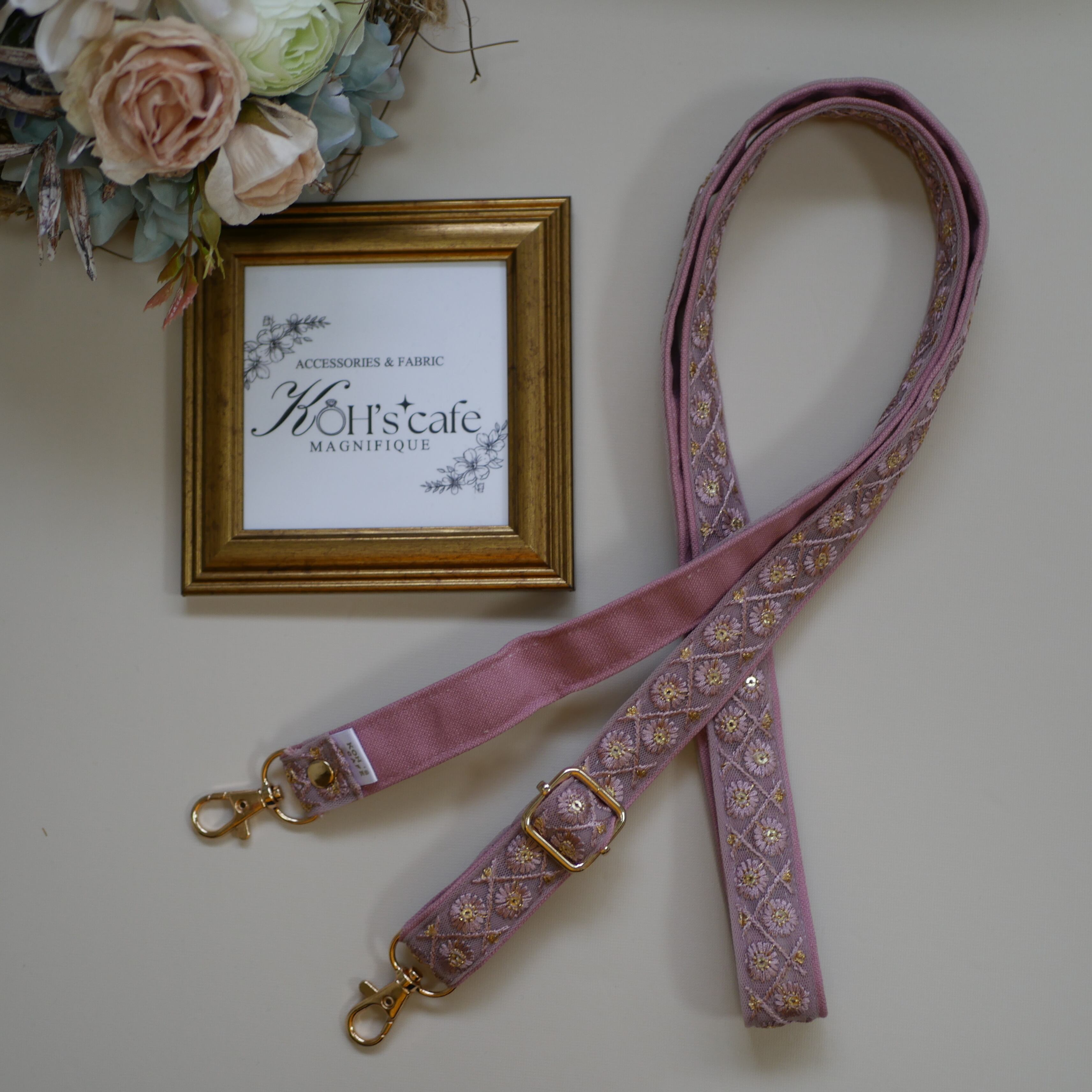 素材:インド刺繍リボン、帆布、真鍮製金具