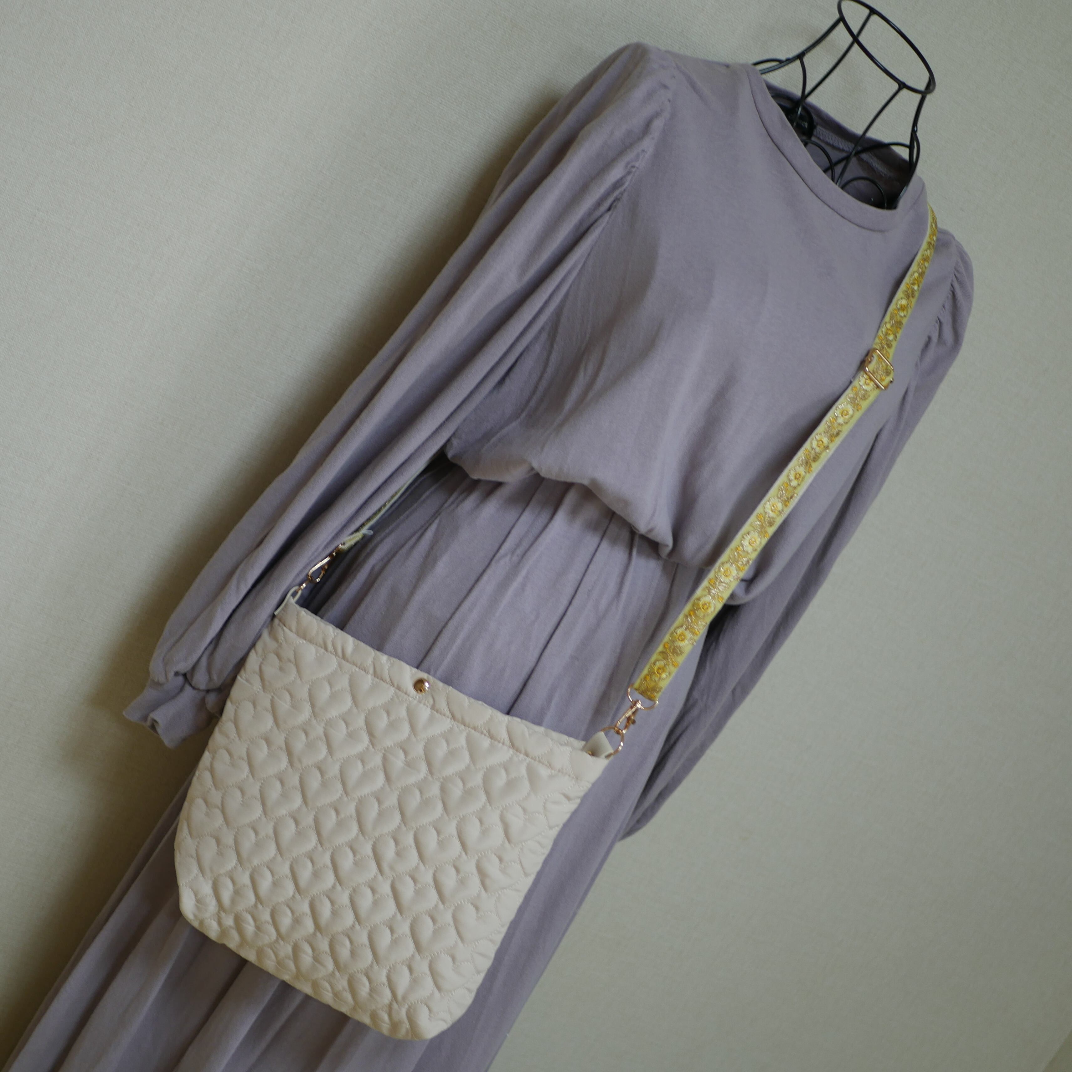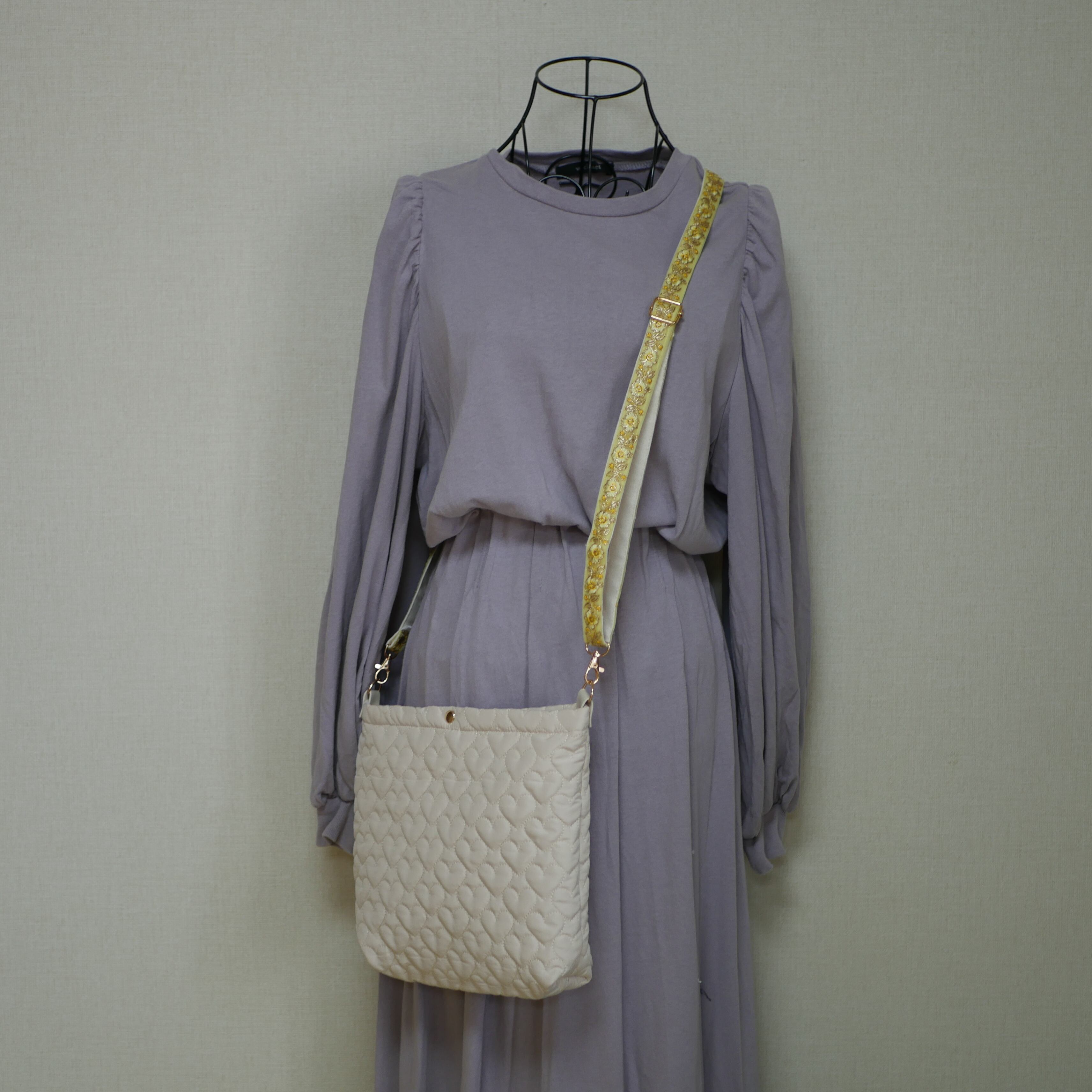 サイズ調節が出来るので、長くすれば、ショルダーバッグ、短くすれば肩がけバッグにもなります。