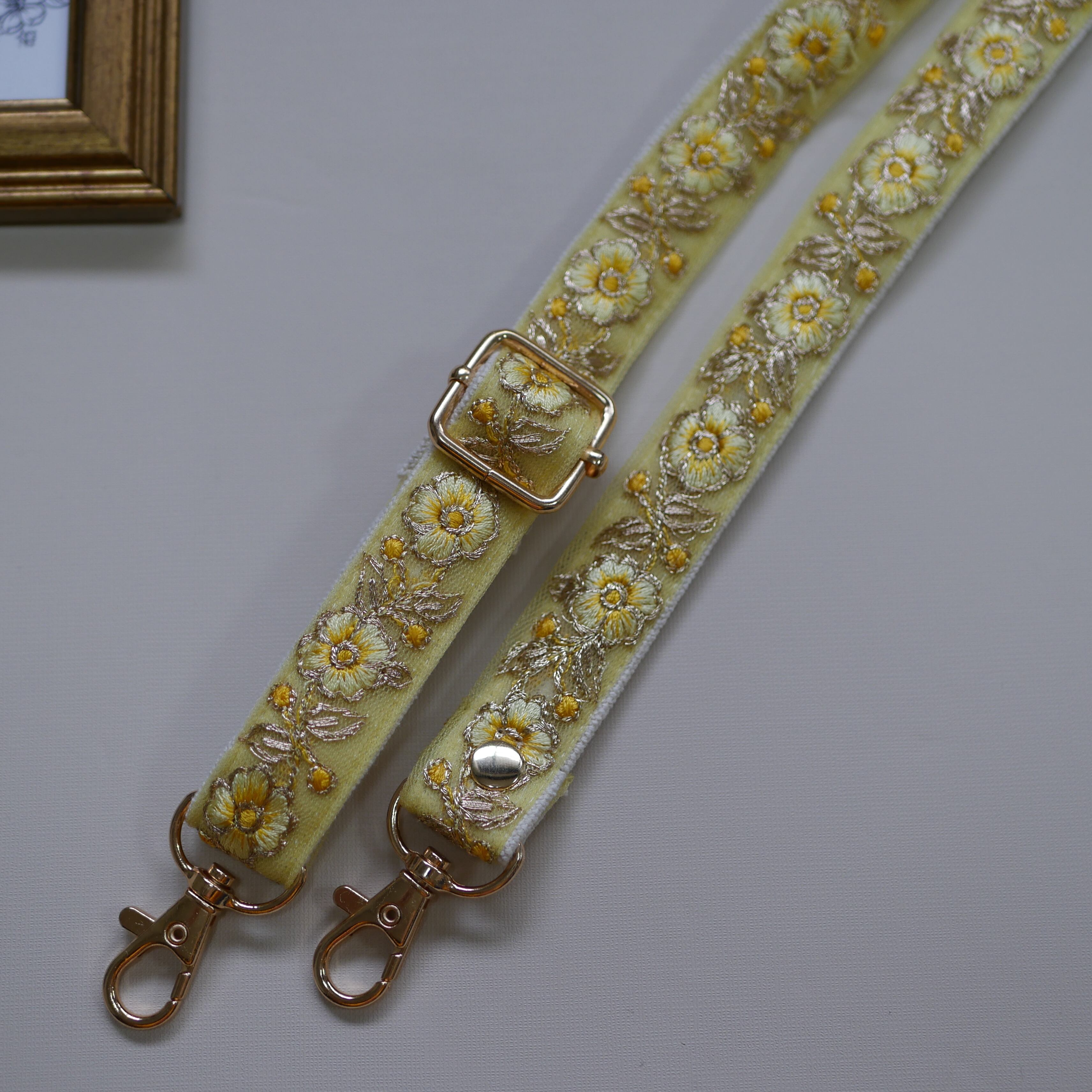 素材:インド刺繍リボン、帆布、真鍮製金具