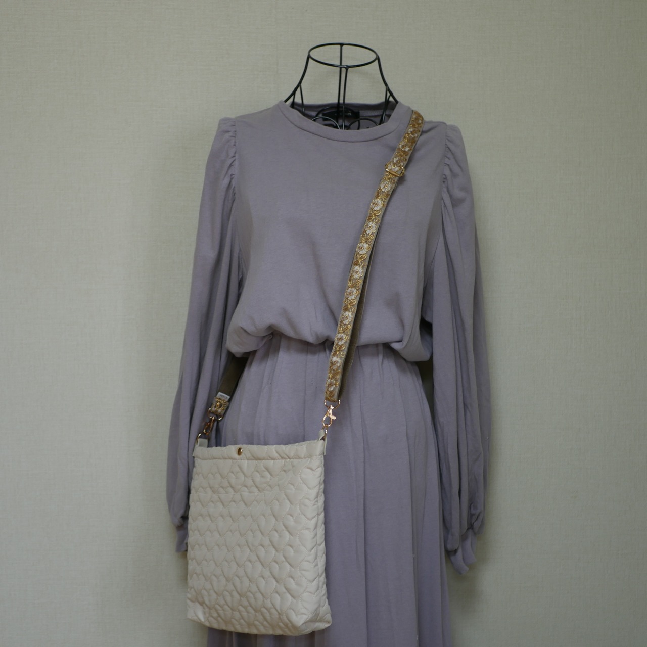 サイズ調節が出来るので、長くすれば、ショルダーバッグ、短くすれば肩がけバッグにもなります。