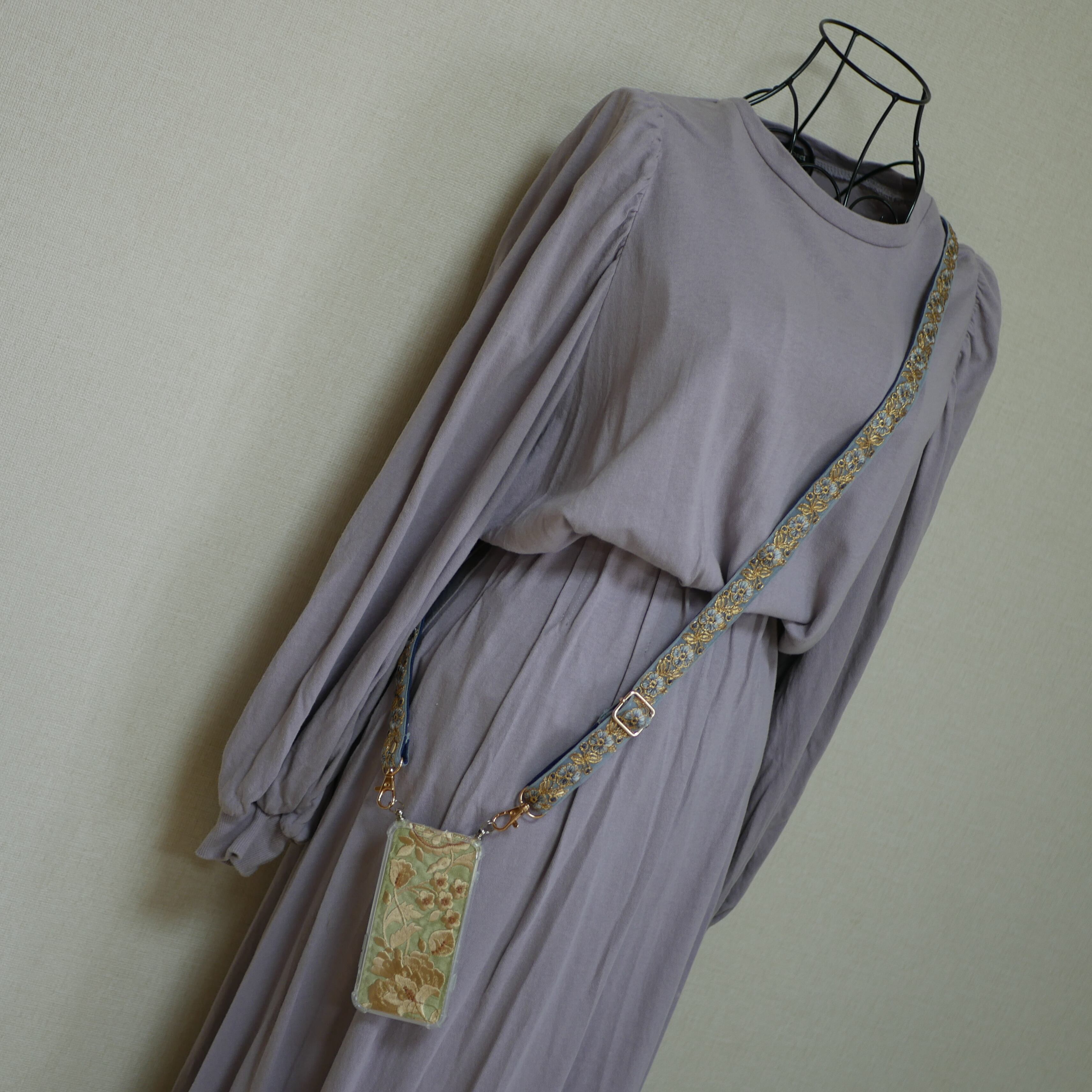 素材:インド刺繍リボン、帆布、真鍮製金具