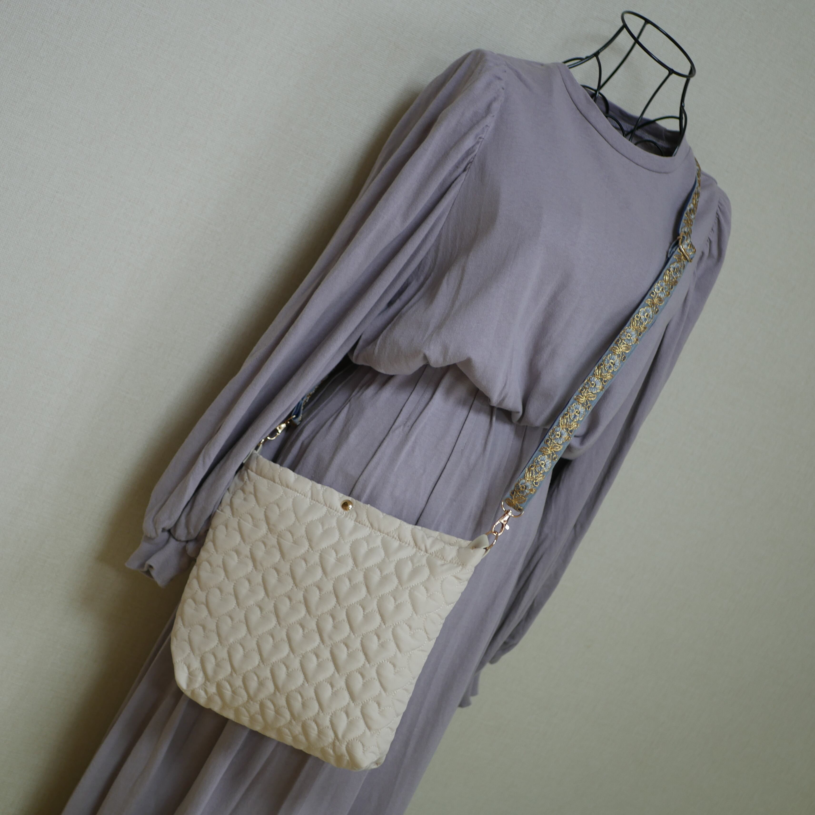 サイズ調節が出来るので、長くすれば、ショルダーバッグ、短くすれば肩がけバッグにもなります。